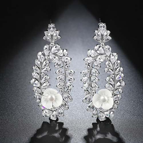 Роскошные вечерние серьги с белым жемчугом и перламутром